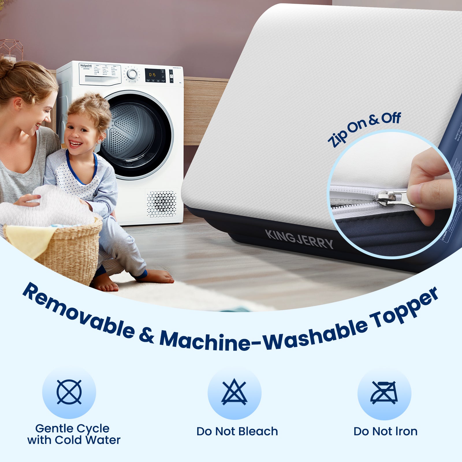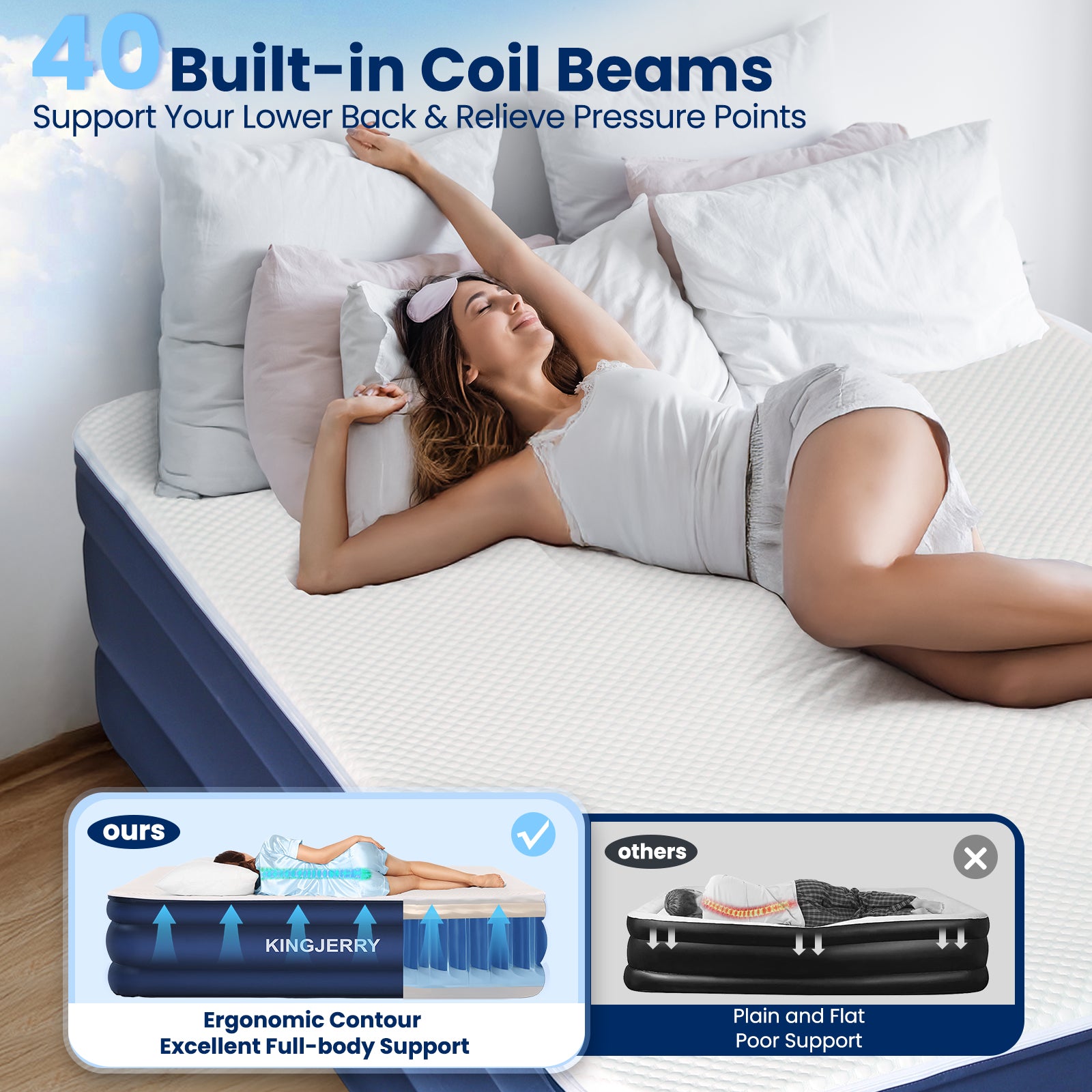 - Soft Like Never Before: Unlike traditional air mattress, our KINGJERRY inflatable mattress features a certified memory foam topper, soft to the touch, which molds to your body, providing the same support and coziness as a real bed. Indulge in cloud - like comfort with our air mattress