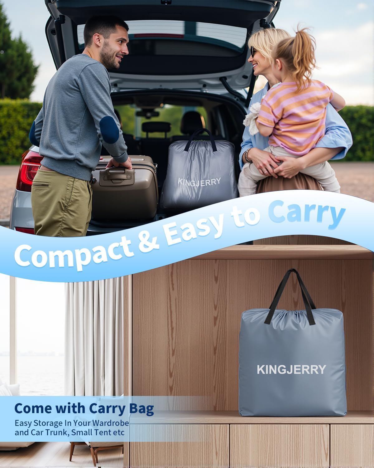 - Versatile Application: KINGJERRY air bed comes with a convenient carrying bag, air mattress can be easily folded for storage and transportation, suitable for various scenarios, whether it's for daily home use, traveling, camping, entertaining guests, taking a lunch break in the office, or during moving